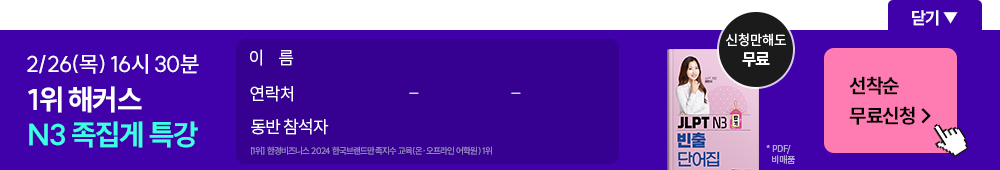 1) ÇØÄ¿½º ÀϺ»¾î JLPT N3 ÇÕ°Ý Á·Áý°Ô Ư°­ ¾È³» ¹× °ü·Ã ¹®ÀÇ»çÇ× ÀÀ´ë
